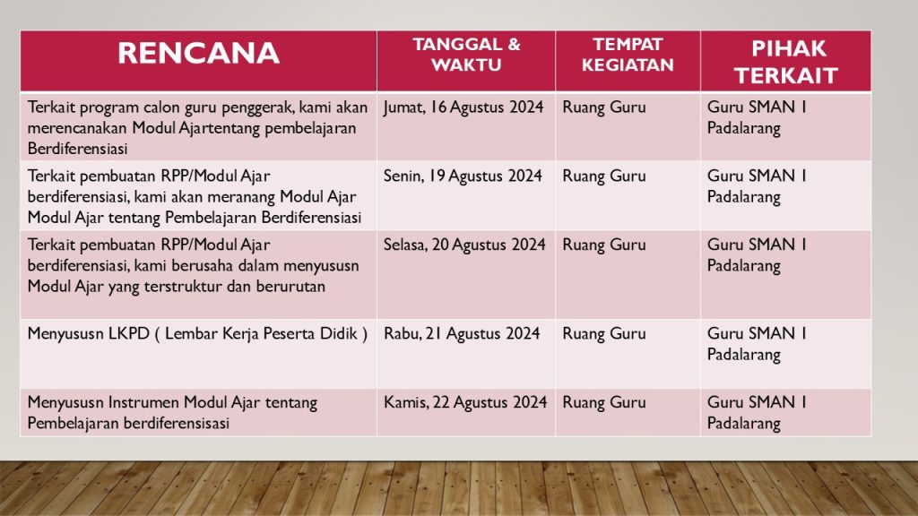 Waktu Kegiatan : Jumlat, 16 Agustus 2024 – Kamis, 22 Agustsu 2024